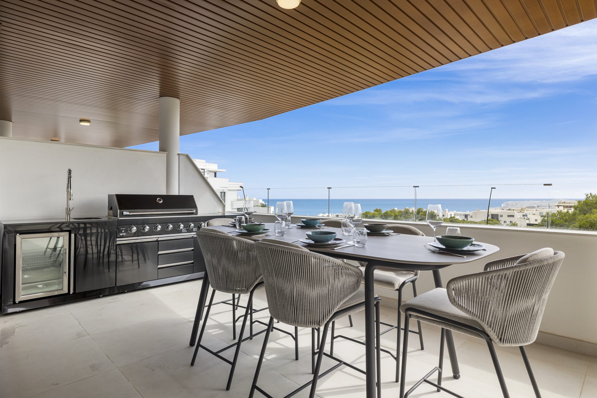 Uno de los grandes protagonistas de la propiedad es su impresionante terraza privada de gran tamaño, perfecta para disfrutar del clima privilegiado de la Costa del Sol durante todo el año. La terraza ofrece una zona chill-out ideal para relajarse, una zona de comedor exterior para disfrutar de comidas al aire libre, y una espectacular barbacoa, creando el espacio perfecto para compartir momentos inolvidables con familia o amigos.